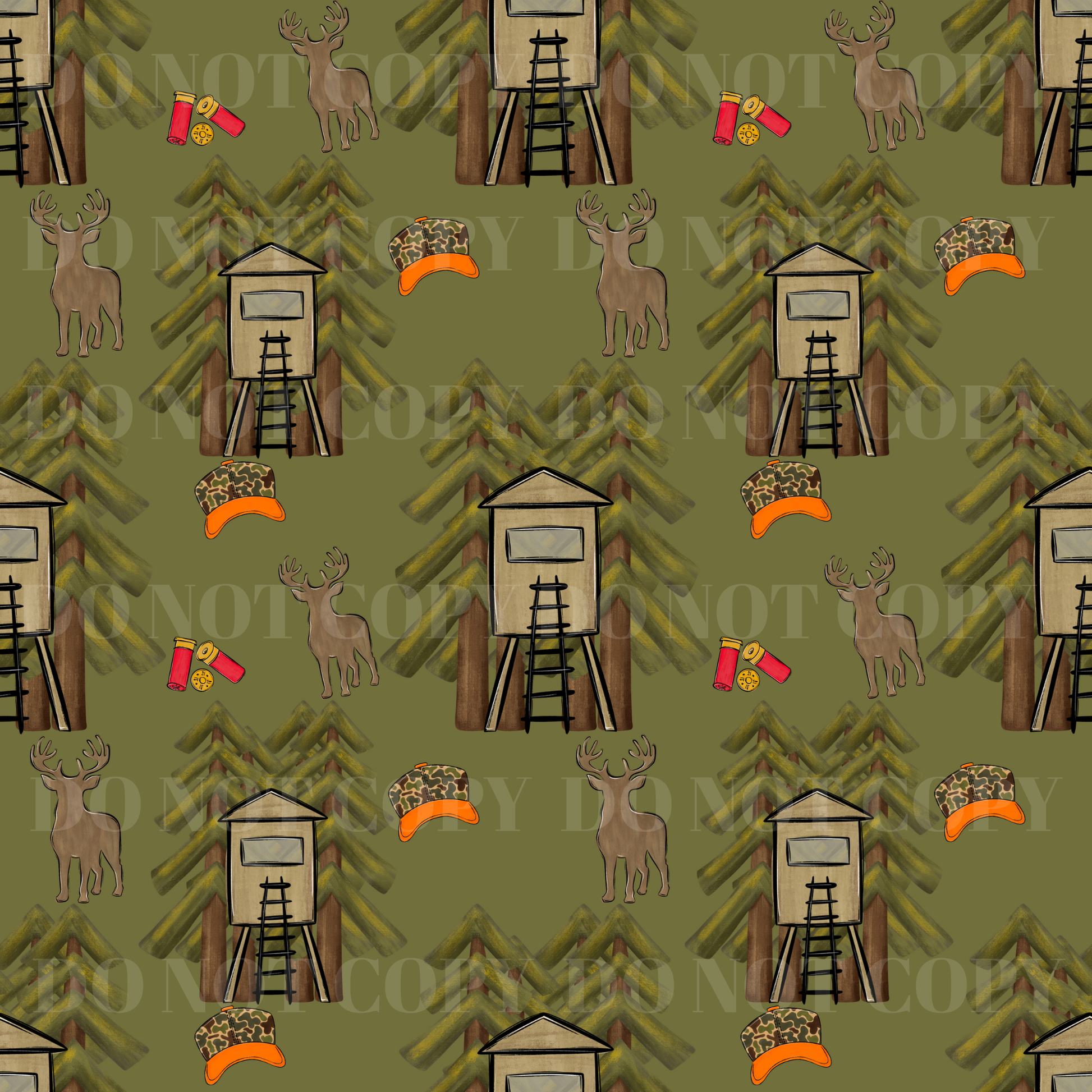 -Deer Pattern – deer stand, buck, and camo hat